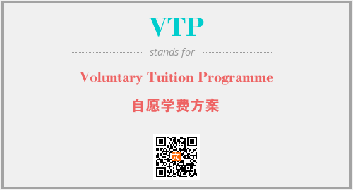 以上为Voluntary Tuition Programme英文缩略词VTP的中文解释,以及该英文缩写在英语的流行度、分类和应用领域方面的信息。