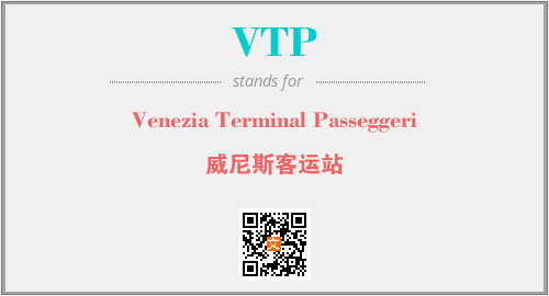 英文缩略词“VTP”经常作为“Venezia Terminal Passeggeri”的英文缩写来使用,中文表示:“威尼斯客运站”。本文将详细介绍英文缩写词VTP所代表英文单词,其对应的中文拼音、详细解释以及在英语中的流行度。此外,还有关于缩略词VTP的分类、应用领域及相关应用示例等。