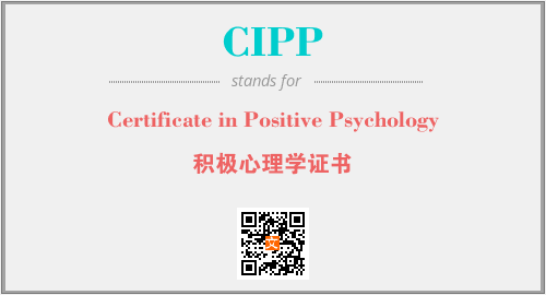 上述内容是“Certificate in Positive Psychology”作为“CIPP”的缩写,解释为“积极心理学证书”时的信息,以及英文缩略词CIPP所代表的英文单词,其对应的中文拼音、详细解释以及在英文中的流行度和相关分类、应用领域及应用示例等。