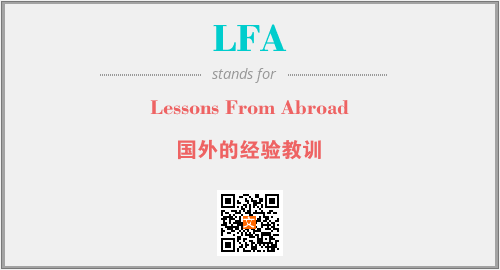 英文缩略词“LFA”经常作为“Lessons From Abroad”的英文缩写来使用,中文表示:“国外的经验教训”。本文将详细介绍英文缩写词LFA所代表英文单词,其对应的中文拼音、详细解释以及在英语中的流行度。此外,还有关于缩略词LFA的分类、应用领域及相关应用示例等。