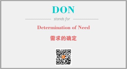 上述内容是“Determination of Need”作为“DON”的缩写,解释为“需求的确定”时的信息,以及英文缩略词DON所代表的英文单词,其对应的中文拼音、详细解释以及在英文中的流行度和相关分类、应用领域及应用示例等。