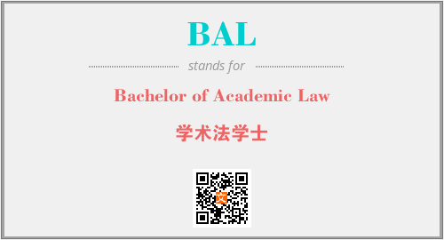 上述内容是“Bachelor of Academic Law”作为“BAL”的缩写,解释为“学术法学士”时的信息,以及英文缩略词BAL所代表的英文单词,其对应的中文拼音、详细解释以及在英文中的流行度和相关分类、应用领域及应用示例等。