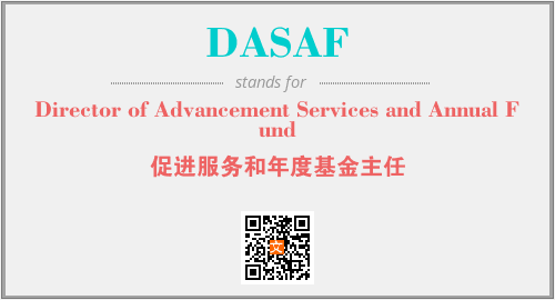 上述内容是“Director of Advancement Services and Annual Fund”作为“DASAF”的缩写,解释为“促进服务和年度基金主任”时的信息,以及英文缩略词DASAF所代表的英文单词,其对应的中文拼音、详细解释以及在英文中的流行度和相关分类、应用领域及应用示例等。