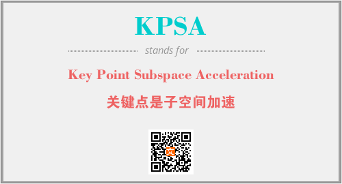 上述内容是“Key Point Subspace Acceleration”作为“KPSA”的缩写,解释为“关键点是子空间加速”时的信息,以及英文缩略词KPSA所代表的英文单词,其对应的中文拼音、详细解释以及在英文中的流行度和相关分类、应用领域及应用示例等。