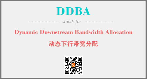 英文缩略词“DDBA”经常作为“Dynamic Downstream Bandwidth Allocation”的英文缩写来使用,中文表示:“动态下行带宽分配”。本文将详细介绍英文缩写词DDBA所代表英文单词,其对应的中文拼音、详细解释以及在英语中的流行度。此外,还有关于缩略词DDBA的分类、应用领域及相关应用示例等。