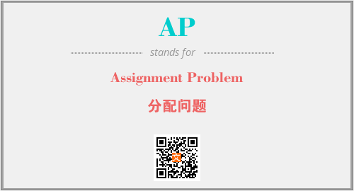 上述内容是“Assignment Problem”作为“AP”的缩写,解释为“分配问题”时的信息,以及英文缩略词AP所代表的英文单词,其对应的中文拼音、详细解释以及在英文中的流行度和相关分类、应用领域及应用示例等。