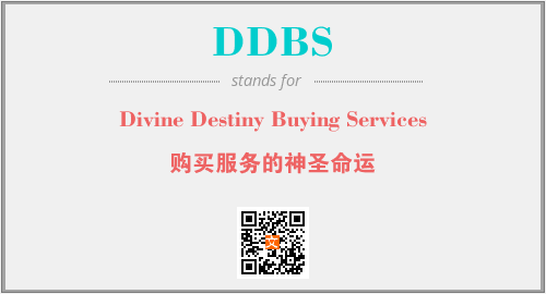 英文缩略词“DDBS”经常作为“Divine Destiny Buying Services”的英文缩写来使用,中文表示:“购买服务的神圣命运”。本文将详细介绍英文缩写词DDBS所代表英文单词,其对应的中文拼音、详细解释以及在英语中的流行度。此外,还有关于缩略词DDBS的分类、应用领域及相关应用示例等。
