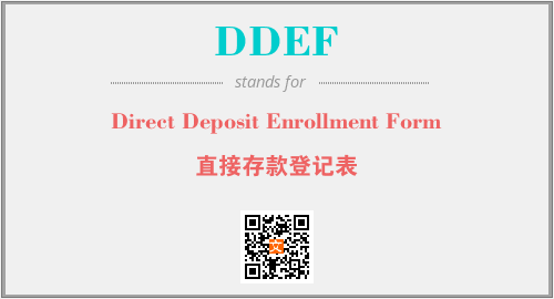 以上为Direct Deposit Enrollment Form英文缩略词DDEF的中文解释,以及该英文缩写在英语的流行度、分类和应用领域方面的信息。