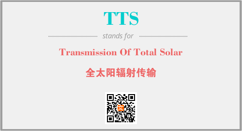 上述内容是“Transmission Of Total Solar”作为“TTS”的缩写,解释为“全太阳辐射传输”时的信息,以及英文缩略词TTS所代表的英文单词,其对应的中文拼音、详细解释以及在英文中的流行度和相关分类、应用领域及应用示例等。