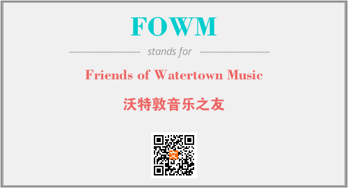 英文缩略词“FOWM”经常作为“Friends of Watertown Music”的英文缩写来使用,中文表示:“沃特敦音乐之友”。本文将详细介绍英文缩写词FOWM所代表英文单词,其对应的中文拼音、详细解释以及在英语中的流行度。此外,还有关于缩略词FOWM的分类、应用领域及相关应用示例等。