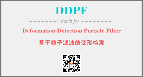 上述内容是“Deformation Detection Particle Filter”作为“DDPF”的缩写,解释为“基于粒子滤波的变形检测”时的信息,以及英文缩略词DDPF所代表的英文单词,其对应的中文拼音、详细解释以及在英文中的流行度和相关分类、应用领域及应用示例等。