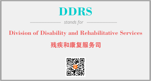 英文缩略词“DDRS”经常作为“Division of Disability and Rehabilitative Services”的英文缩写来使用,中文表示:“残疾和康复服务司”。本文将详细介绍英文缩写词DDRS所代表英文单词,其对应的中文拼音、详细解释以及在英语中的流行度。此外,还有关于缩略词DDRS的分类、应用领域及相关应用示例等。