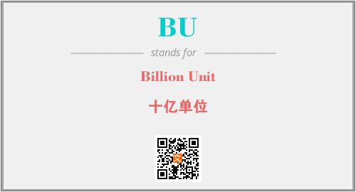 英文缩略词“BU”经常作为“Billion Unit”的英文缩写来使用,中文表示:“十亿单位”。本文将详细介绍英文缩写词BU所代表英文单词,其对应的中文拼音、详细解释以及在英语中的流行度。此外,还有关于缩略词BU的分类、应用领域及相关应用示例等。