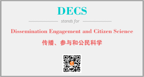 上述内容是“Dissemination Engagement and Citizen Science”作为“DECS”的缩写,解释为“传播、参与和公民科学”时的信息,以及英文缩略词DECS所代表的英文单词,其对应的中文拼音、详细解释以及在英文中的流行度和相关分类、应用领域及应用示例等。