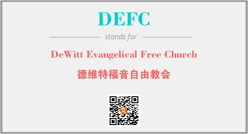 英文缩略词“DEFC”经常作为“DeWitt Evangelical Free Church”的英文缩写来使用,中文表示:“德维特福音自由教会”。本文将详细介绍英文缩写词DEFC所代表英文单词,其对应的中文拼音、详细解释以及在英语中的流行度。此外,还有关于缩略词DEFC的分类、应用领域及相关应用示例等。