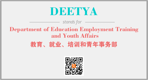 上述内容是“Department of Education Employment Training and Youth Affairs”作为“DEETYA”的缩写,解释为“教育、就业、培训和青年事务部”时的信息,以及英文缩略词DEETYA所代表的英文单词,其对应的中文拼音、详细解释以及在英文中的流行度和相关分类、应用领域及应用示例等。