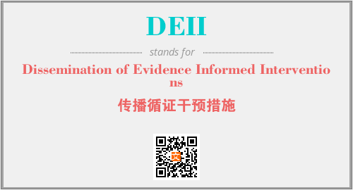 以上为Dissemination of Evidence Informed Interventions英文缩略词DEII的中文解释,以及该英文缩写在英语的流行度、分类和应用领域方面的信息。