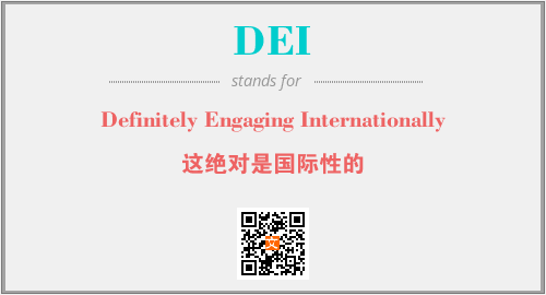 以上为Definitely Engaging Internationally英文缩略词DEI的中文解释,以及该英文缩写在英语的流行度、分类和应用领域方面的信息。