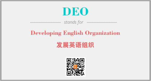 英文缩略词“DEO”经常作为“Developing English Organization”的英文缩写来使用,中文表示:“发展英语组织”。本文将详细介绍英文缩写词DEO所代表英文单词,其对应的中文拼音、详细解释以及在英语中的流行度。此外,还有关于缩略词DEO的分类、应用领域及相关应用示例等。