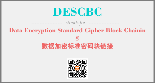 上述内容是“Data Encryption Standard Cipher Block Chaining”作为“DESCBC”的缩写,解释为“数据加密标准密码块链接”时的信息,以及英文缩略词DESCBC所代表的英文单词,其对应的中文拼音、详细解释以及在英文中的流行度和相关分类、应用领域及应用示例等。
