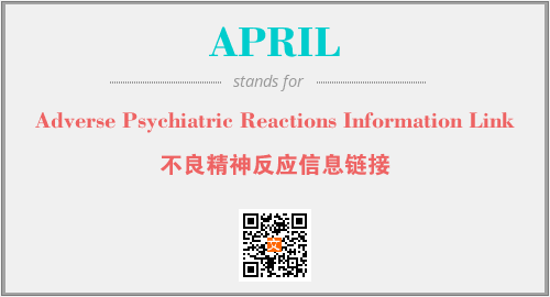 上述内容是“Adverse Psychiatric Reactions Information Link”作为“APRIL”的缩写,解释为“不良精神反应信息链接”时的信息,以及英文缩略词APRIL所代表的英文单词,其对应的中文拼音、详细解释以及在英文中的流行度和相关分类、应用领域及应用示例等。