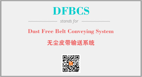 英文缩略词“DFBCS”经常作为“Dust Free Belt Conveying System”的英文缩写来使用,中文表示:“无尘皮带输送系统”。本文将详细介绍英文缩写词DFBCS所代表英文单词,其对应的中文拼音、详细解释以及在英语中的流行度。此外,还有关于缩略词DFBCS的分类、应用领域及相关应用示例等。