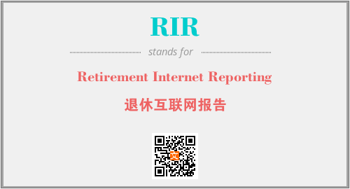 英文缩略词“RIR”经常作为“Retirement Internet Reporting”的英文缩写来使用,中文表示:“退休互联网报告”。本文将详细介绍英文缩写词RIR所代表英文单词,其对应的中文拼音、详细解释以及在英语中的流行度。此外,还有关于缩略词RIR的分类、应用领域及相关应用示例等。