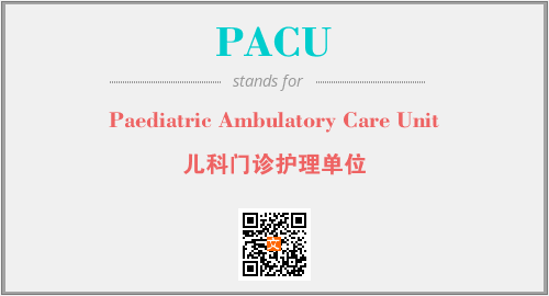 以上为Paediatric Ambulatory Care Unit英文缩略词PACU的中文解释,以及该英文缩写在英语的流行度、分类和应用领域方面的信息。