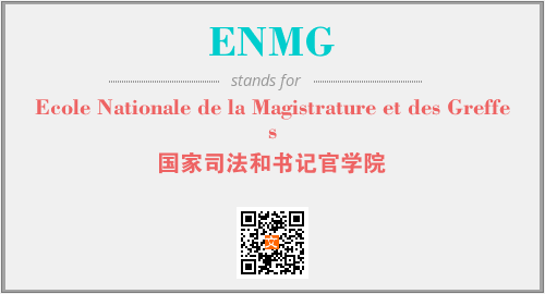 上述内容是“Ecole Nationale de la Magistrature et des Greffes”作为“ENMG”的缩写,解释为“国家司法和书记官学院”时的信息,以及英文缩略词ENMG所代表的英文单词,其对应的中文拼音、详细解释以及在英文中的流行度和相关分类、应用领域及应用示例等。