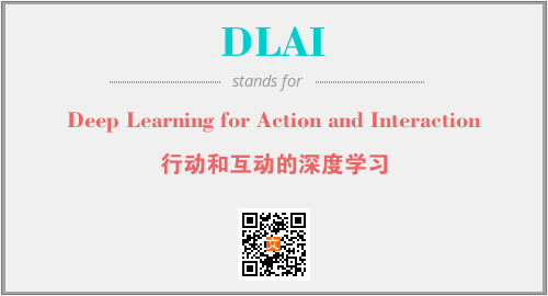 上述内容是“Deep Learning for Action and Interaction”作为“DLAI”的缩写,解释为“行动和互动的深度学习”时的信息,以及英文缩略词DLAI所代表的英文单词,其对应的中文拼音、详细解释以及在英文中的流行度和相关分类、应用领域及应用示例等。