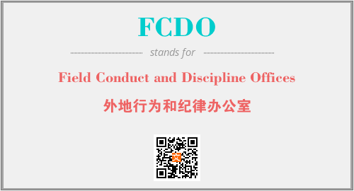 英文缩略词“FCDO”经常作为“Field Conduct and Discipline Offices”的英文缩写来使用,中文表示:“外地行为和纪律办公室”。本文将详细介绍英文缩写词FCDO所代表英文单词,其对应的中文拼音、详细解释以及在英语中的流行度。此外,还有关于缩略词FCDO的分类、应用领域及相关应用示例等。