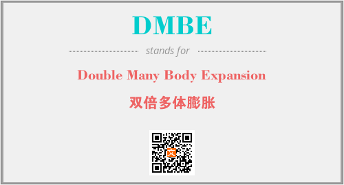 上述内容是“Double Many Body Expansion”作为“DMBE”的缩写,解释为“双倍多体膨胀”时的信息,以及英文缩略词DMBE所代表的英文单词,其对应的中文拼音、详细解释以及在英文中的流行度和相关分类、应用领域及应用示例等。