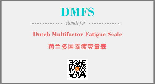 上述内容是“Dutch Multifactor Fatigue Scale”作为“DMFS”的缩写,解释为“荷兰多因素疲劳量表”时的信息,以及英文缩略词DMFS所代表的英文单词,其对应的中文拼音、详细解释以及在英文中的流行度和相关分类、应用领域及应用示例等。