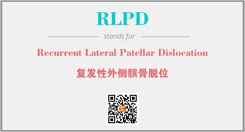 上述内容是“Recurrent Lateral Patellar Dislocation”作为“RLPD”的缩写,解释为“复发性外侧髌骨脱位”时的信息,以及英文缩略词RLPD所代表的英文单词,其对应的中文拼音、详细解释以及在英文中的流行度和相关分类、应用领域及应用示例等。