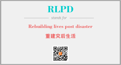 上述内容是“Rebuilding lives post disaster”作为“RLPD”的缩写,解释为“重建灾后生活”时的信息,以及英文缩略词RLPD所代表的英文单词,其对应的中文拼音、详细解释以及在英文中的流行度和相关分类、应用领域及应用示例等。