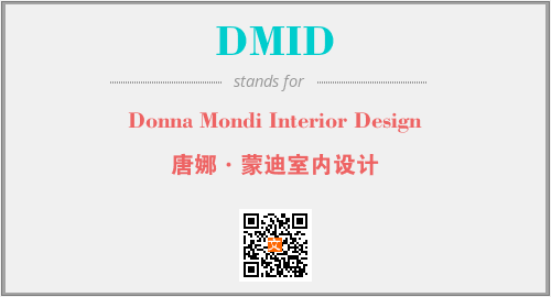 上述内容是“Donna Mondi Interior Design”作为“DMID”的缩写,解释为“唐娜·蒙迪室内设计”时的信息,以及英文缩略词DMID所代表的英文单词,其对应的中文拼音、详细解释以及在英文中的流行度和相关分类、应用领域及应用示例等。