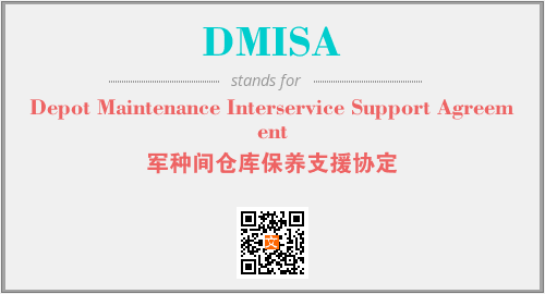 上述内容是“Depot Maintenance Interservice Support Agreement”作为“DMISA”的缩写,解释为“军种间仓库保养支援协定”时的信息,以及英文缩略词DMISA所代表的英文单词,其对应的中文拼音、详细解释以及在英文中的流行度和相关分类、应用领域及应用示例等。