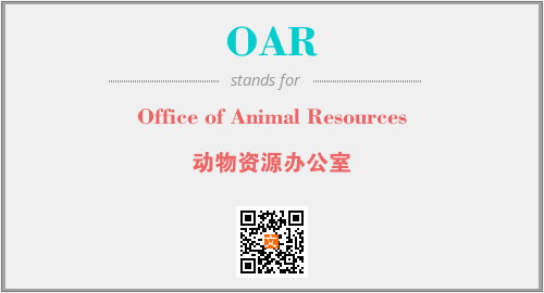上述内容是“Office of Animal Resources”作为“OAR”的缩写,解释为“动物资源办公室”时的信息,以及英文缩略词OAR所代表的英文单词,其对应的中文拼音、详细解释以及在英文中的流行度和相关分类、应用领域及应用示例等。