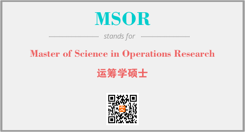 英文缩略词“MSOR”经常作为“Master of Science in Operations Research”的英文缩写来使用,中文表示:“运筹学硕士”。本文将详细介绍英文缩写词MSOR所代表英文单词,其对应的中文拼音、详细解释以及在英语中的流行度。此外,还有关于缩略词MSOR的分类、应用领域及相关应用示例等。