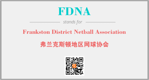 英文缩略词“FDNA”经常作为“Frankston District Netball Association”的英文缩写来使用,中文表示:“弗兰克斯顿地区网球协会”。本文将详细介绍英文缩写词FDNA所代表英文单词,其对应的中文拼音、详细解释以及在英语中的流行度。此外,还有关于缩略词FDNA的分类、应用领域及相关应用示例等。