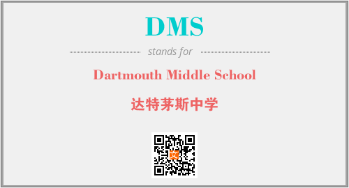 上述内容是“Dartmouth Middle School”作为“DMS”的缩写,解释为“达特茅斯中学”时的信息,以及英文缩略词DMS所代表的英文单词,其对应的中文拼音、详细解释以及在英文中的流行度和相关分类、应用领域及应用示例等。