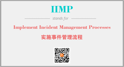 上述内容是“Implement Incident Management Processes”作为“IIMP”的缩写,解释为“实施事件管理流程”时的信息,以及英文缩略词IIMP所代表的英文单词,其对应的中文拼音、详细解释以及在英文中的流行度和相关分类、应用领域及应用示例等。