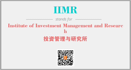上述内容是“Institute of Investment Management and Research”作为“IIMR”的缩写,解释为“投资管理与研究所”时的信息,以及英文缩略词IIMR所代表的英文单词,其对应的中文拼音、详细解释以及在英文中的流行度和相关分类、应用领域及应用示例等。