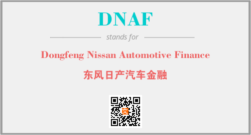 上述内容是“Dongfeng Nissan Automotive Finance”作为“DNAF”的缩写,解释为“东风日产汽车金融”时的信息,以及英文缩略词DNAF所代表的英文单词,其对应的中文拼音、详细解释以及在英文中的流行度和相关分类、应用领域及应用示例等。