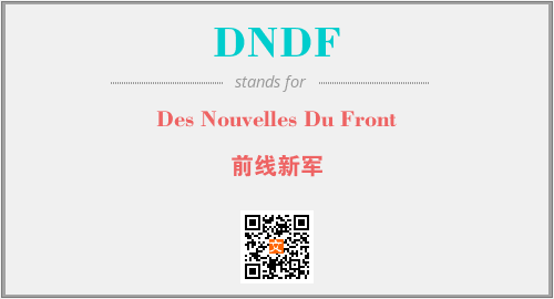 英文缩略词“DNDF”经常作为“Des Nouvelles Du Front”的英文缩写来使用,中文表示:“前线新军”。本文将详细介绍英文缩写词DNDF所代表英文单词,其对应的中文拼音、详细解释以及在英语中的流行度。此外,还有关于缩略词DNDF的分类、应用领域及相关应用示例等。