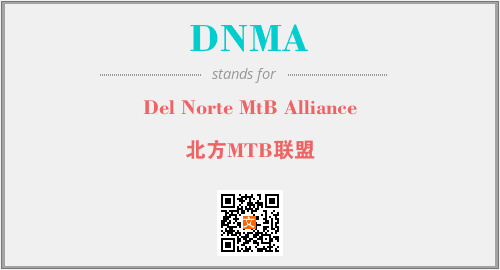 上述内容是“Del Norte MtB Alliance”作为“DNMA”的缩写,解释为“北方MTB联盟”时的信息,以及英文缩略词DNMA所代表的英文单词,其对应的中文拼音、详细解释以及在英文中的流行度和相关分类、应用领域及应用示例等。
