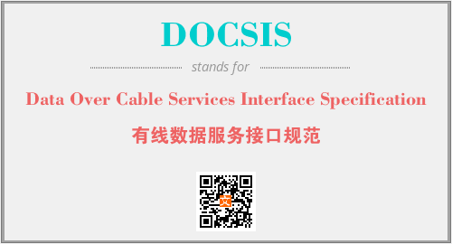 英文缩略词“DOCSIS”经常作为“Data Over Cable Services Interface Specification”的英文缩写来使用,中文表示:“有线数据服务接口规范”。本文将详细介绍英文缩写词DOCSIS所代表英文单词,其对应的中文拼音、详细解释以及在英语中的流行度。此外,还有关于缩略词DOCSIS的分类、应用领域及相关应用示例等。