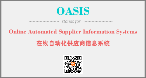 以上为Online Automated Supplier Information Systems英文缩略词OASIS的中文解释,以及该英文缩写在英语的流行度、分类和应用领域方面的信息。