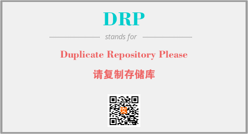 英文缩略词“DRP”经常作为“Duplicate Repository Please”的英文缩写来使用,中文表示:“请复制存储库”。本文将详细介绍英文缩写词DRP所代表英文单词,其对应的中文拼音、详细解释以及在英语中的流行度。此外,还有关于缩略词DRP的分类、应用领域及相关应用示例等。