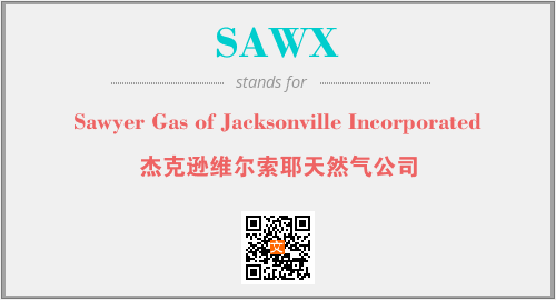 上述内容是“Sawyer Gas of Jacksonville Incorporated”作为“SAWX”的缩写,解释为“杰克逊维尔索耶天然气公司”时的信息,以及英文缩略词SAWX所代表的英文单词,其对应的中文拼音、详细解释以及在英文中的流行度和相关分类、应用领域及应用示例等。